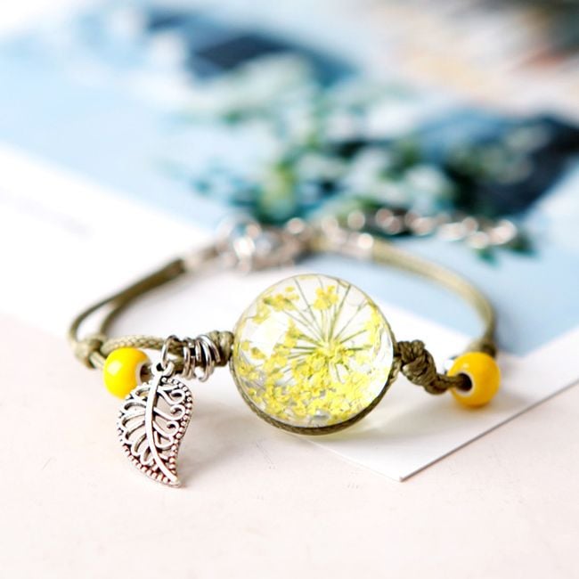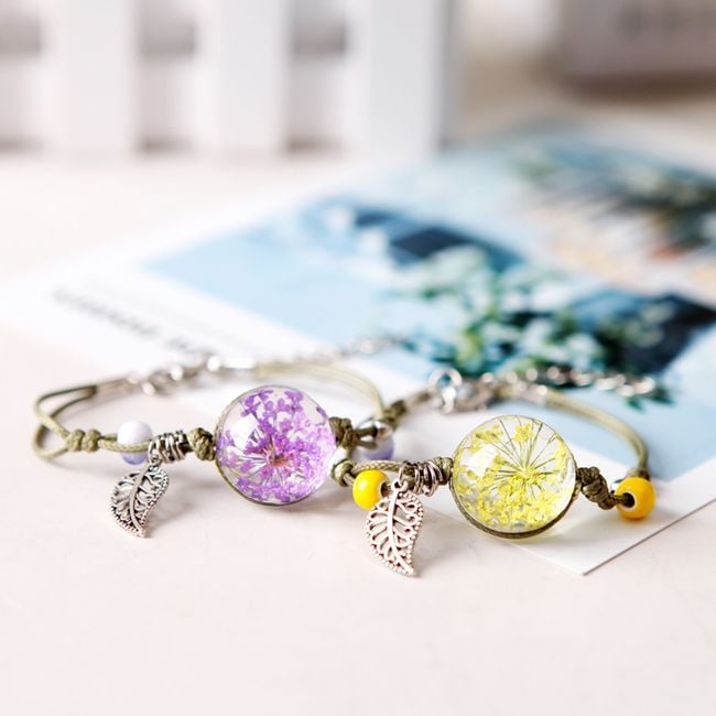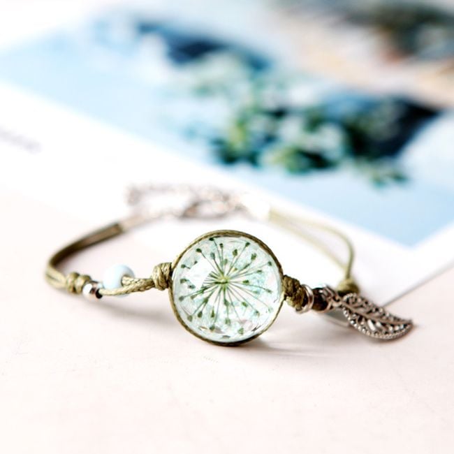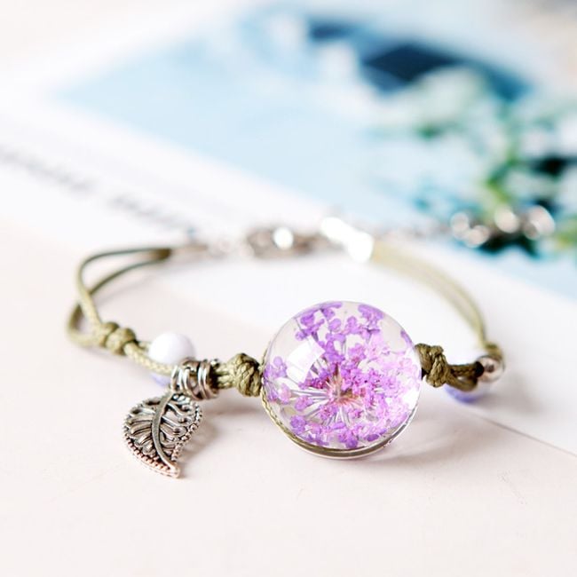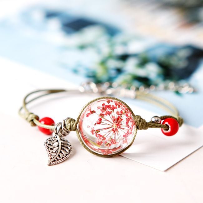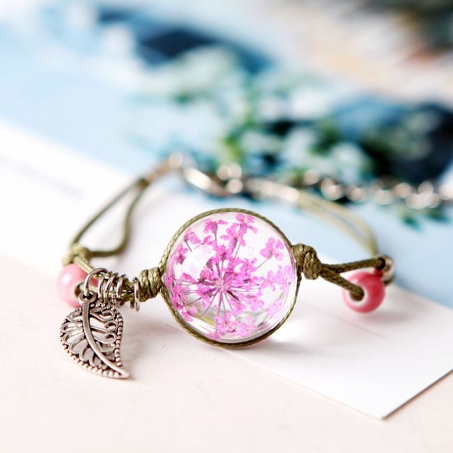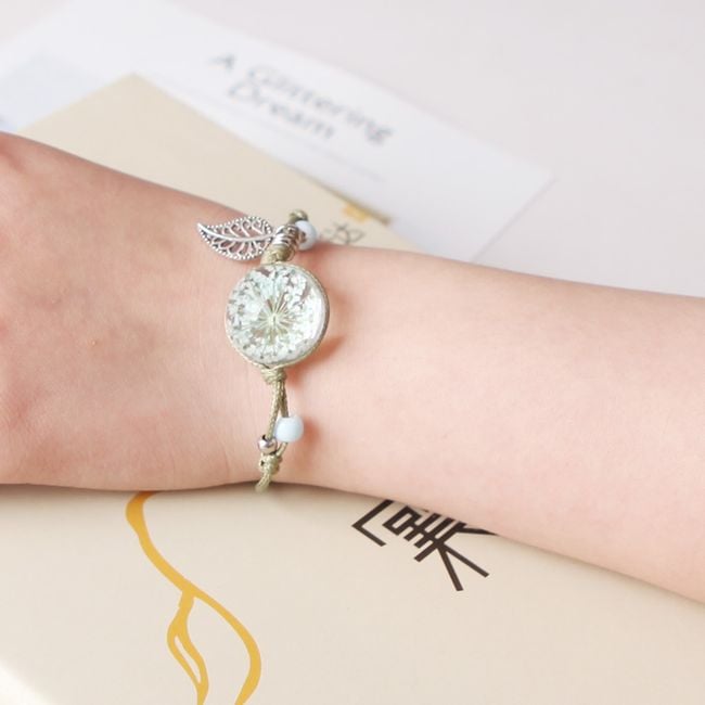 Das Armband hat im Inneren des runden Anhängers eine Blume und eignet sich für den täglichen Gebrauch.