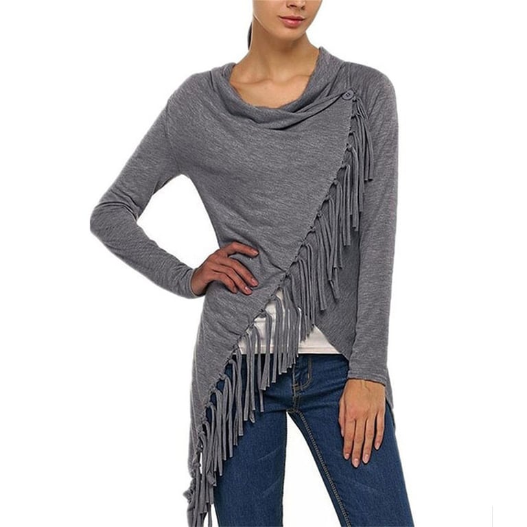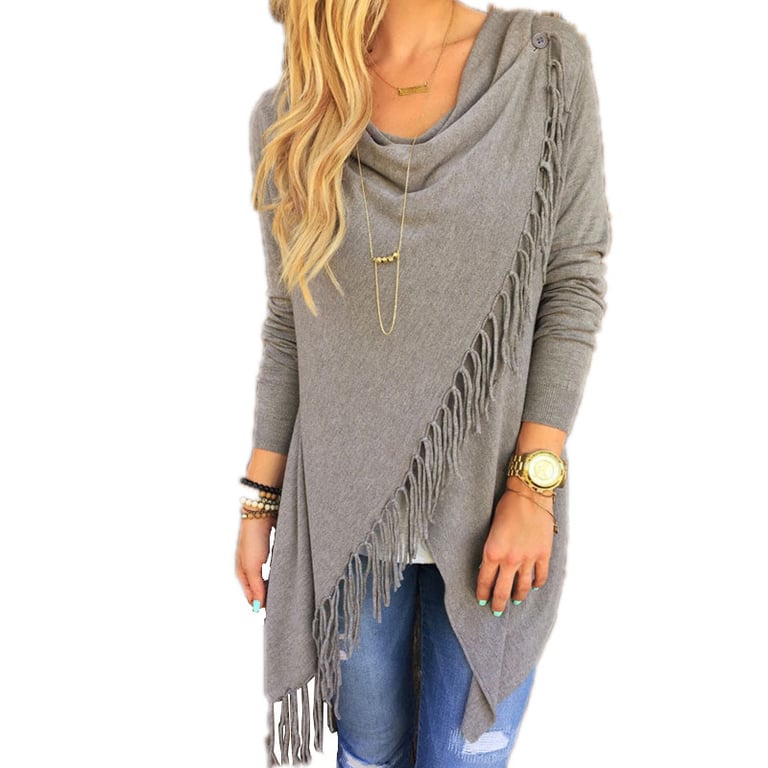 Asymmetrischer Pullover mit Fransen Mula – grau