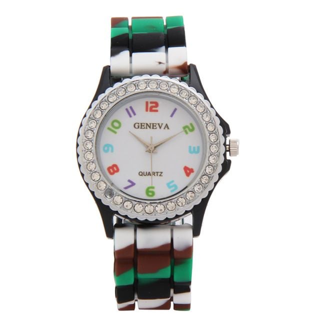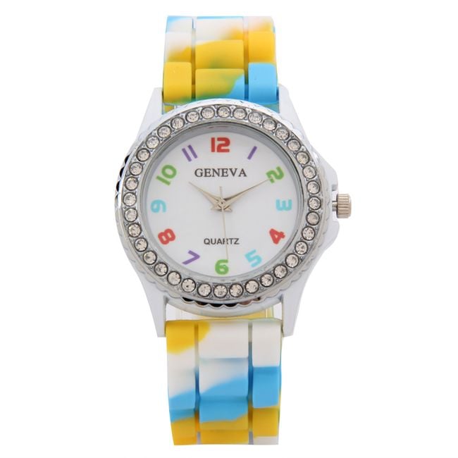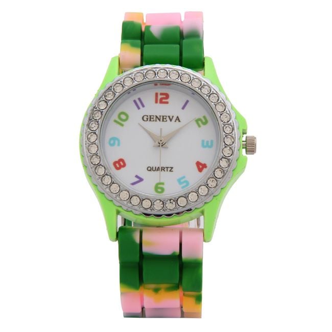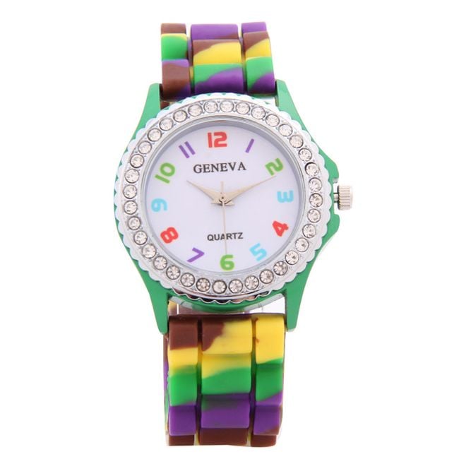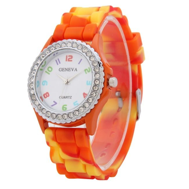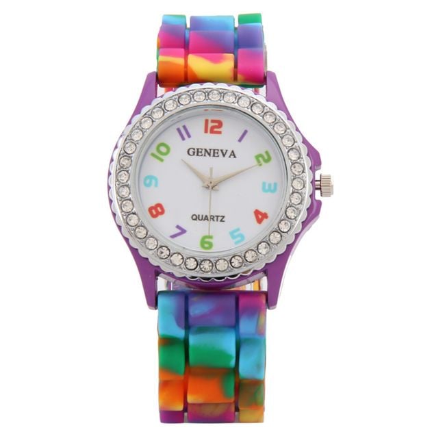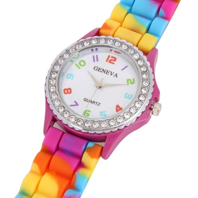 Die bunten Silikonuhren sind eine wunderbare Ergänzung zu sportlichen Outfits! Auf dem Zifferblatt befinden sich bunte Ziffern und es ist mit funkelnden Steinen verziert. Sie können aus 4 Farbvarianten wählen.