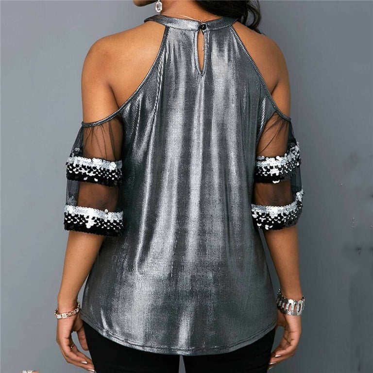 Damen elegante Bluse mit Pailletten und freiliegenden Schultern