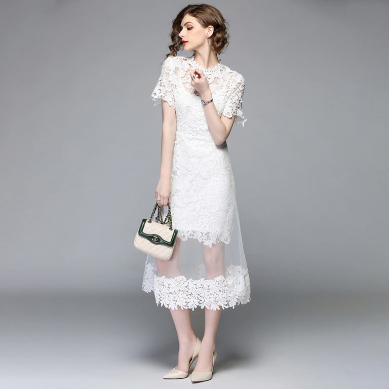 Wählen Sie Ihr Attribut für dieses unkonventionelle Kleid. Es hat einen sehr schönen Schnitt mit einer ungewöhnlichen Verlängerung des durchsichtigen Stoffes bis unter das Knie. Im Paket erhalten Sie nicht nur das Kleid, sondern auch einen praktischen Unterrock.