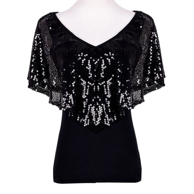 Damen eleganter Top mit Glitzer und attraktivem Schnitt.