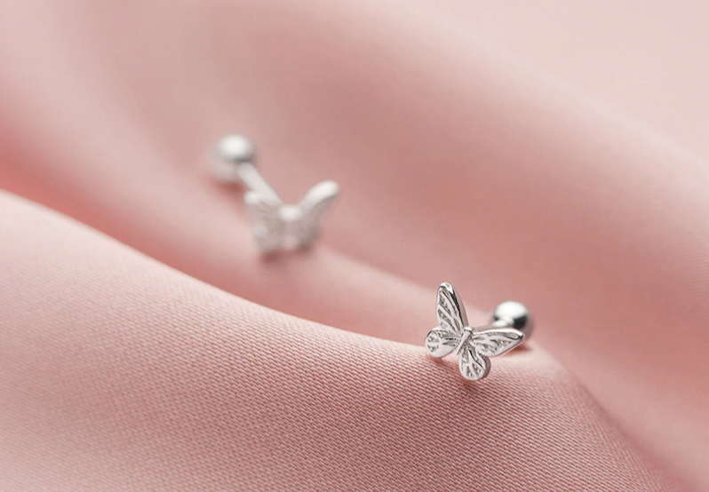 • Wir bieten Ihnen ein schönes Paar dezenter Damenohrringe in Form kleiner Schmetterlinge an.