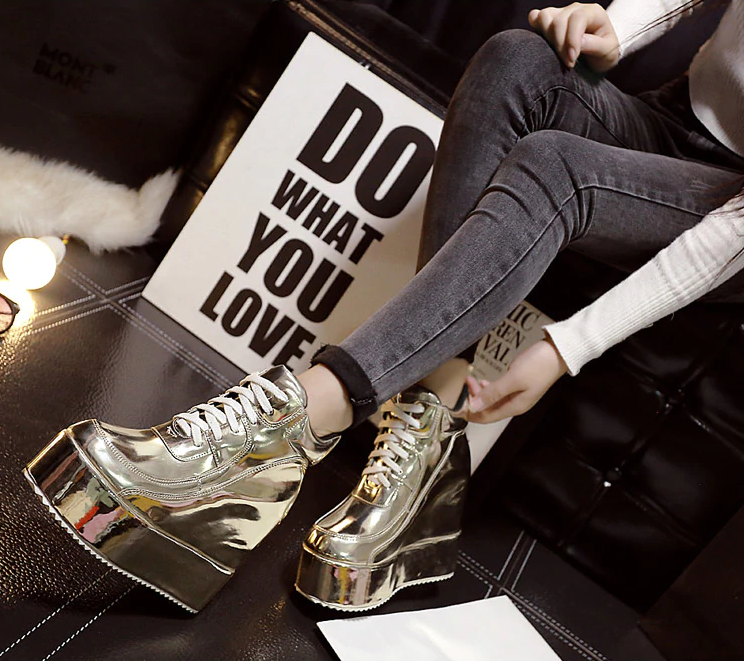 Diese Plateau-Stiefeletten in glänzenden Farben werden von jeder Frau geliebt. Mit diesen glänzenden Schuhen werden Sie nicht übersehen!