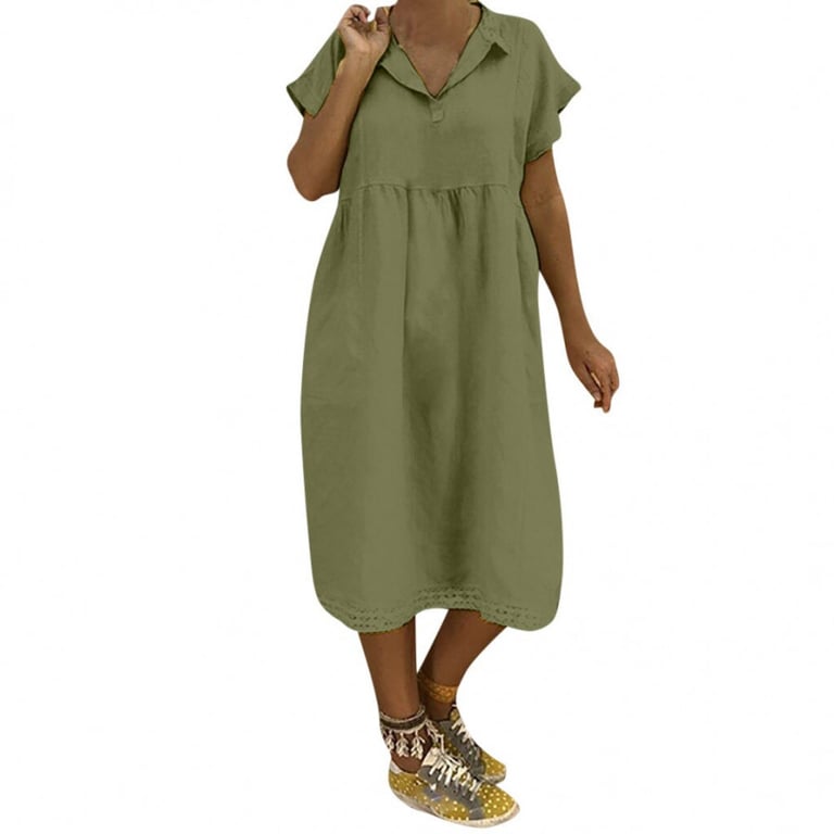 Damenhemdkleid mit kurzen Ärmeln. Ausschnitt mit Kragen und Knöpfen. Lockere Passform mit Raffung. Erhältlich in mehreren Farben.