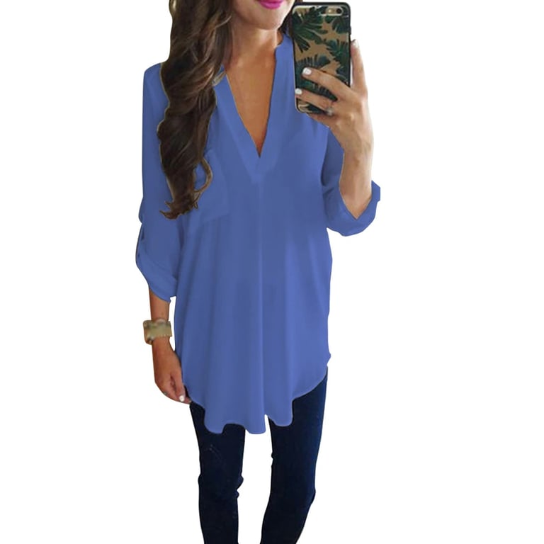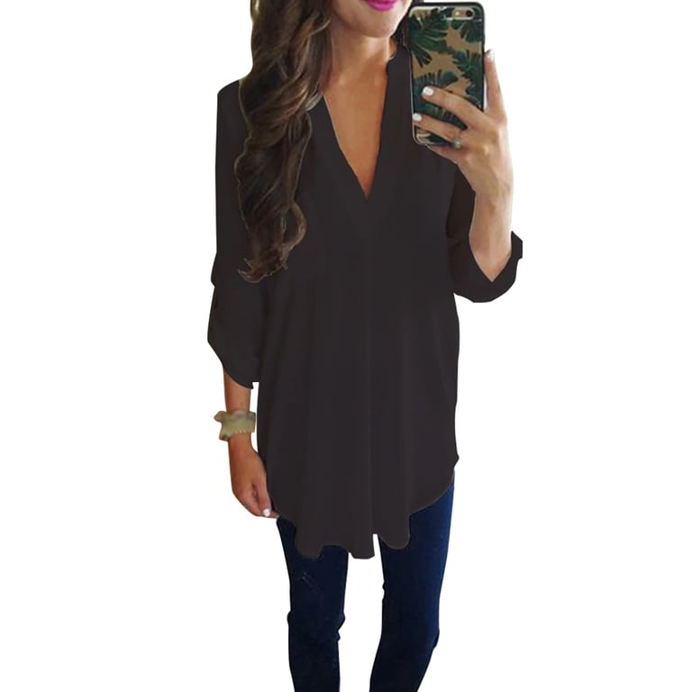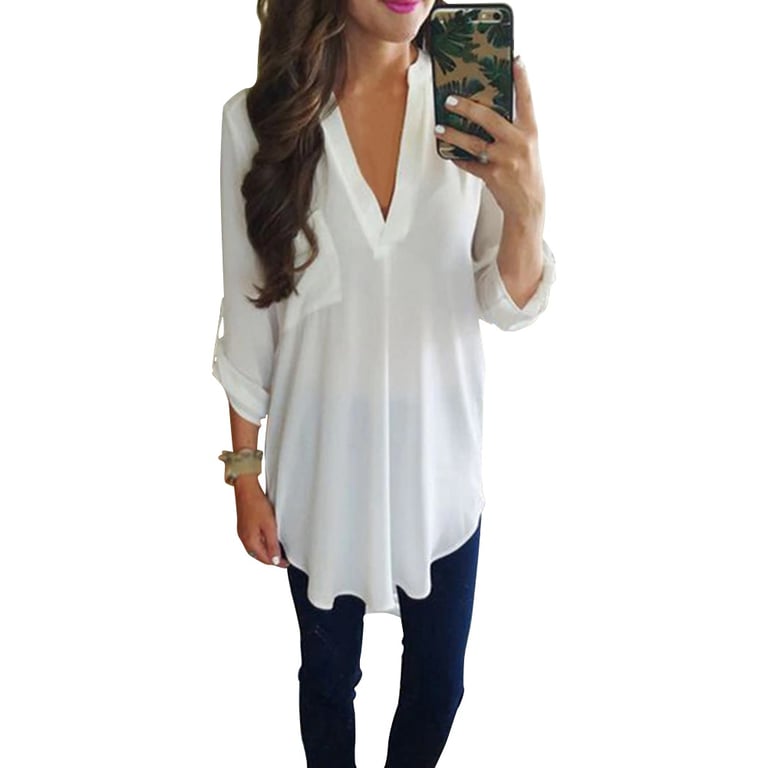 Langärmlige, lockere Bluse mit V-Ausschnitt. Geeignet für den täglichen Gebrauch.