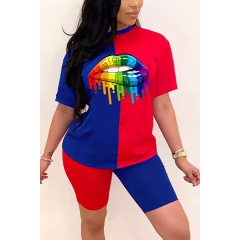 Damen Sommer Set zweifarbige Kleidung mit Regenbogen Druck