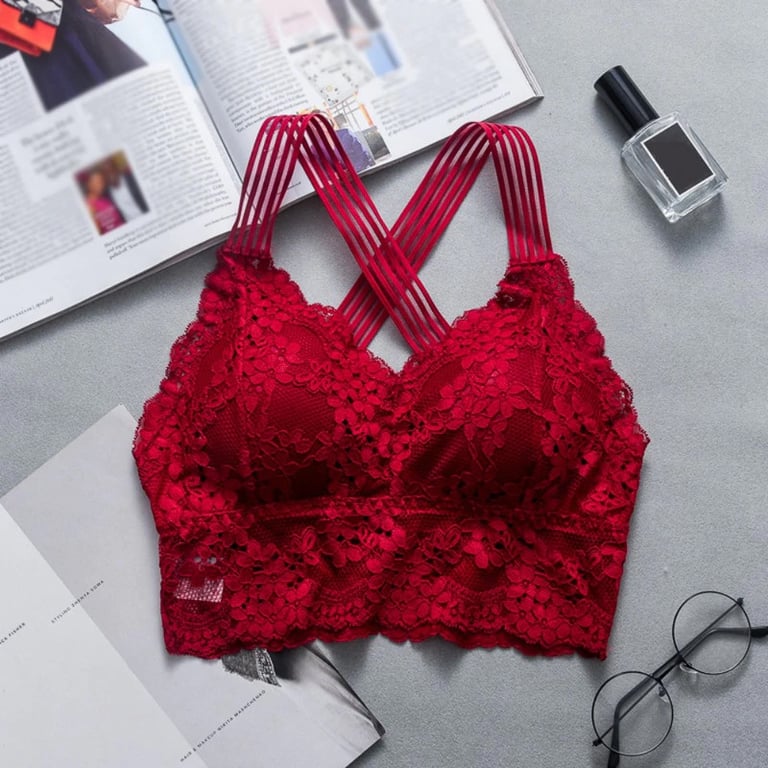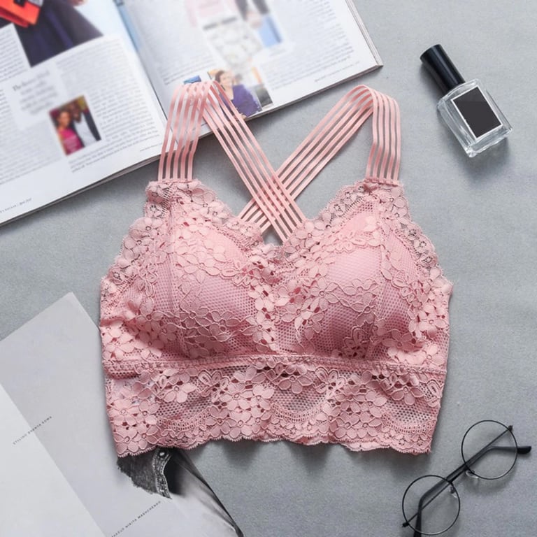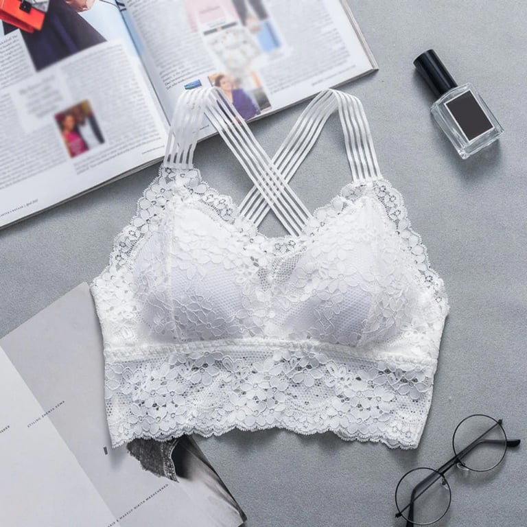 Stylische BH mit Spitzenverzierung und bequemem elastischen Kreuz auf dem Rücken.