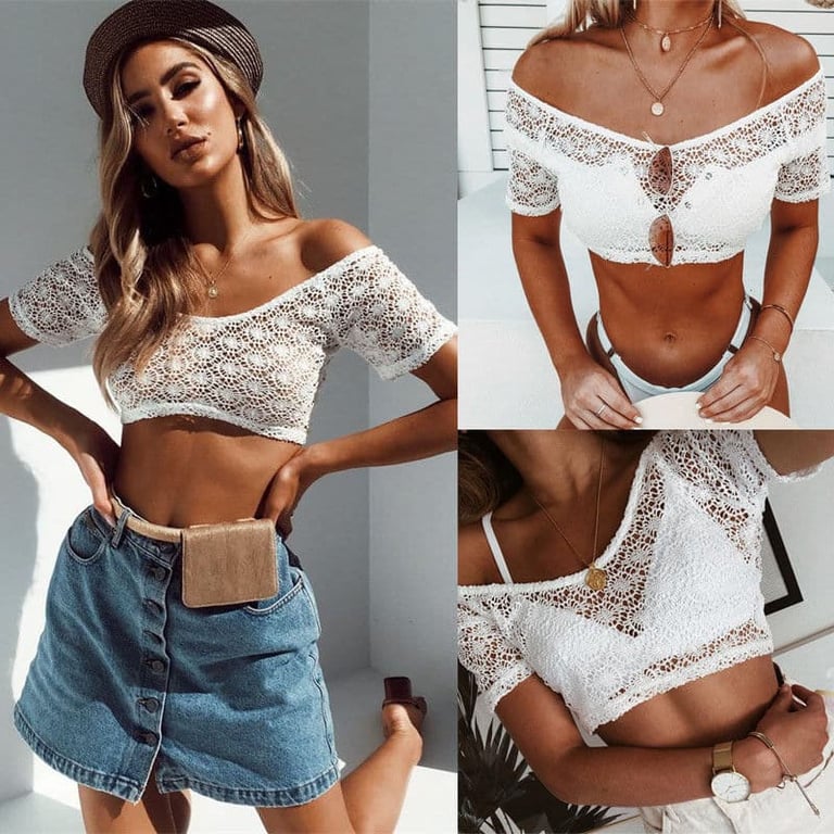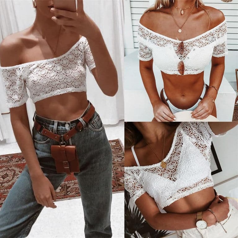 Damen Spitzen-Crop-Top Hellen. Damen Spitzen-Crop-Top Hellen