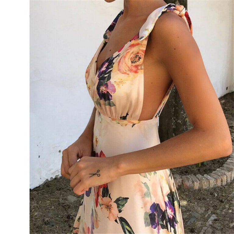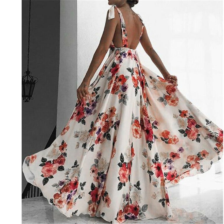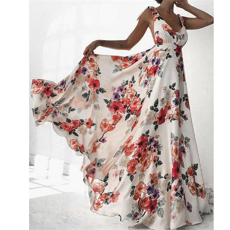 Damen luxuriöses Sommer-Maxikleid mit Blumenmuster.