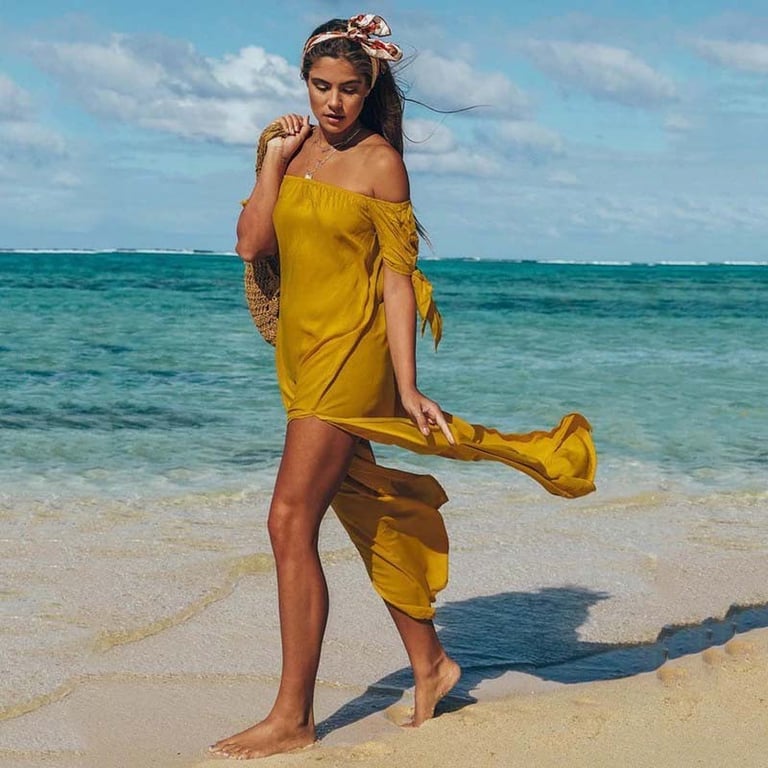 Strandkleid für den Sommer, in dem Sie an jedem heißen Sommertag und nicht nur am Meer strahlen werden! Genießen Sie die Schönheit überall und jederzeit.