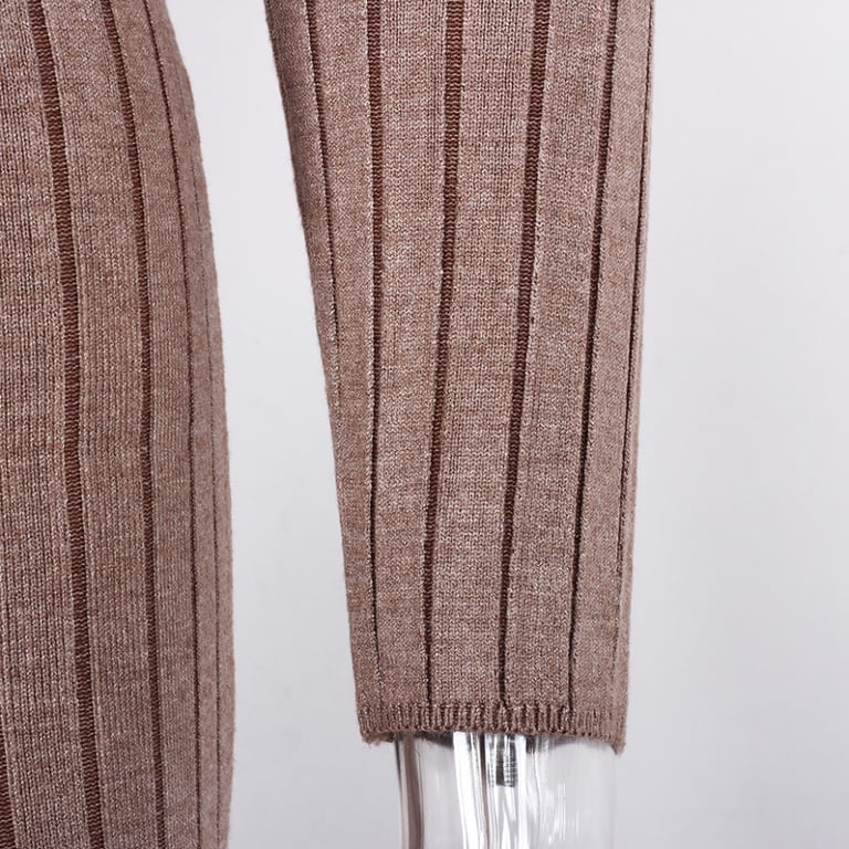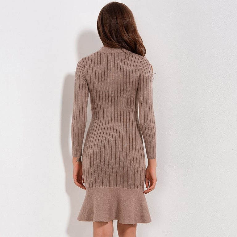 Damen Strickkleid mit langen Ärmeln und Rollkragen. Das Kleid hat einen Rock in knielanger Länge, der mit einem Volant verziert ist. Einheitsgröße.