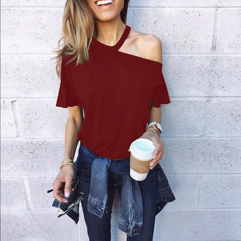 Damen T-Shirt mit kurzen Ärmeln und einem Ausschnitt, der die Schulter freilegt. Lockere Passform. In mehreren Farbvarianten erhältlich.