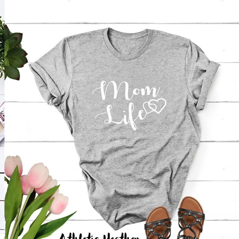 T-Shirt für Mütter mit Druck auf der Vorderseite. Lockere, bequeme Passform mit kurzen Ärmeln und rundem Ausschnitt. Mehrere Farbvarianten verfügbar.