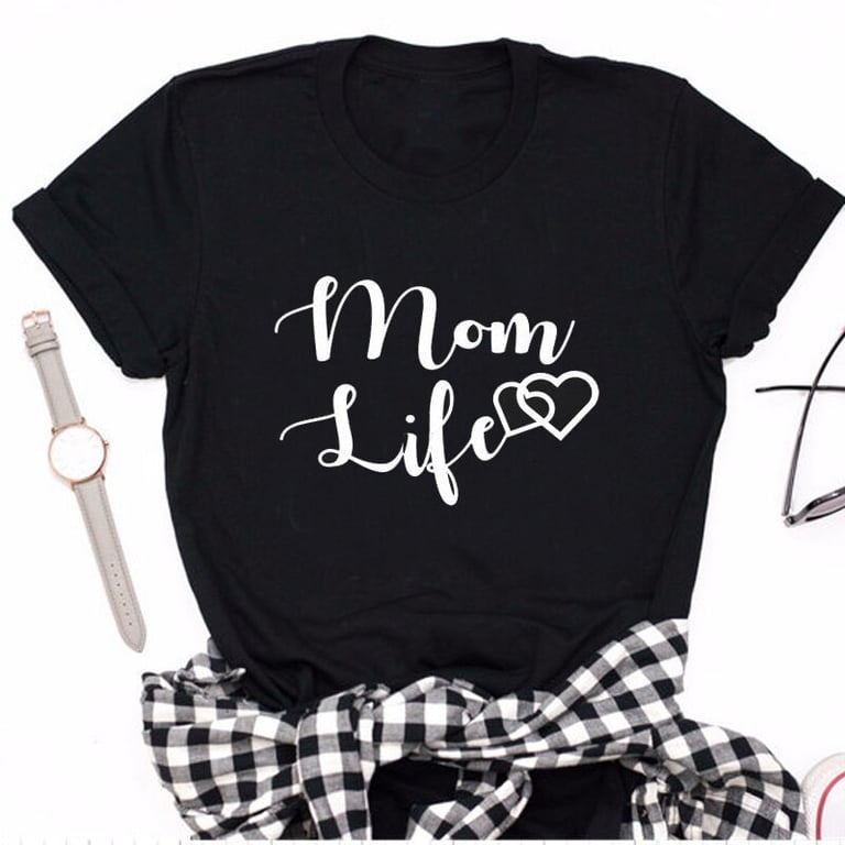 T-Shirt für Mütter mit Druck auf der Vorderseite. Lockere, bequeme Passform mit kurzen Ärmeln und rundem Ausschnitt. Mehrere Farbvarianten verfügbar.
