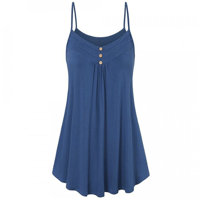 Damen Tanktop mit schmalen Trägern. Das Top hat einen Ausschnitt, der mit Knöpfen verziert ist, und einen lockeren, geraden Schnitt. In großen Größen erhältlich. In mehreren Farbvarianten verfügbar.