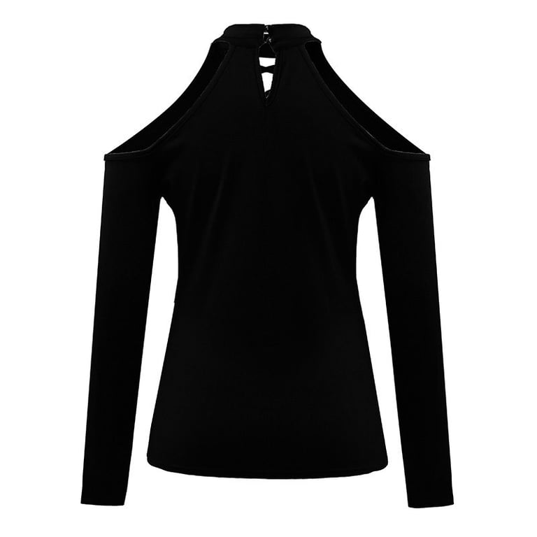 Damentop, Langarmshirt mit freiliegenden Schultern. Das Shirt hat einen V-Ausschnitt mit Schnürung. Angenehmes elastisches Material. Erhältlich in mehreren Varianten und Plus-Size-Größen.