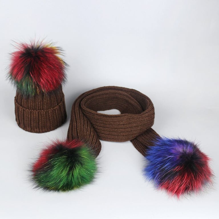 Winterset mit Bommelmütze und Schal in derselben Farbgebung.