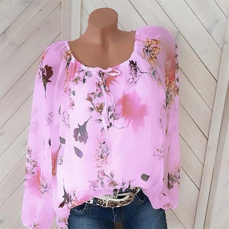 Schöne Damen Oversize-Bluse, in der Sie unter allen Umständen elegant aussehen werden und dank ihres Schnitts auch kleine Unvollkommenheiten leicht verstecken können, die in einem engen T-Shirt auf den ersten Blick sichtbar wären. Blumenmuster sind aus der Mode nicht wegzudenken, also wählen Sie auch Ihre Lieblingsfarbe.