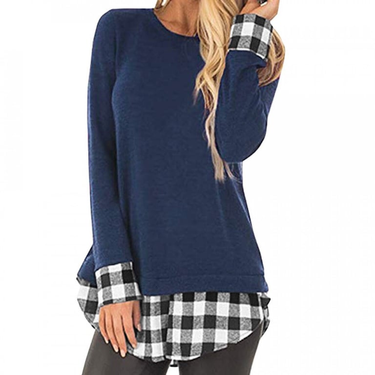 Damenbluse mit langen Ärmeln und rundem Ausschnitt. Lockere, bequeme Passform mit eingearbeitetem Unterhemd im Karomuster. In mehreren Farbvarianten erhältlich.