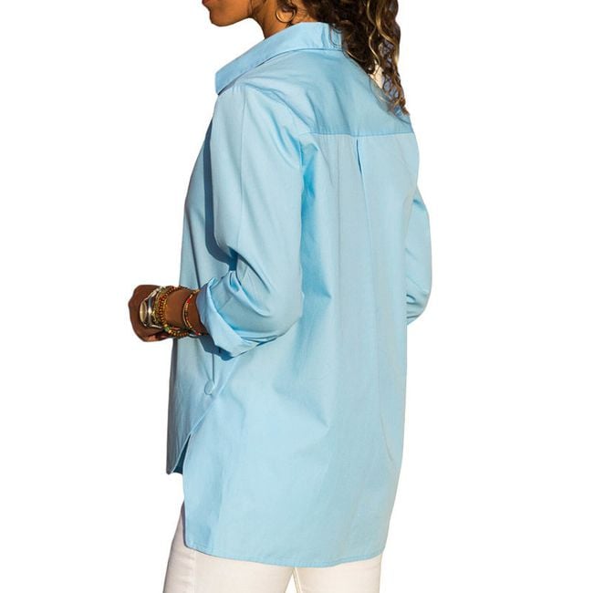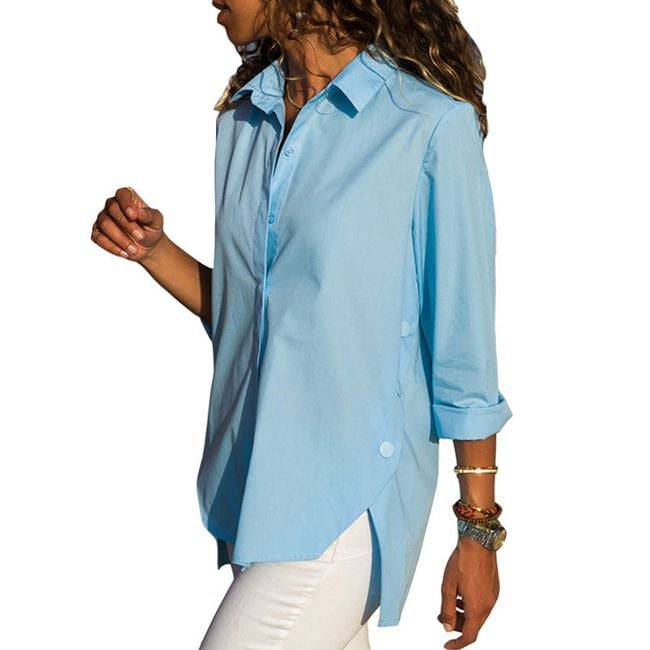 Stylische Bluse mit asymmetrischem Schnitt, langen Ärmeln und Knöpfen. Wählen Sie aus 3 Farben.