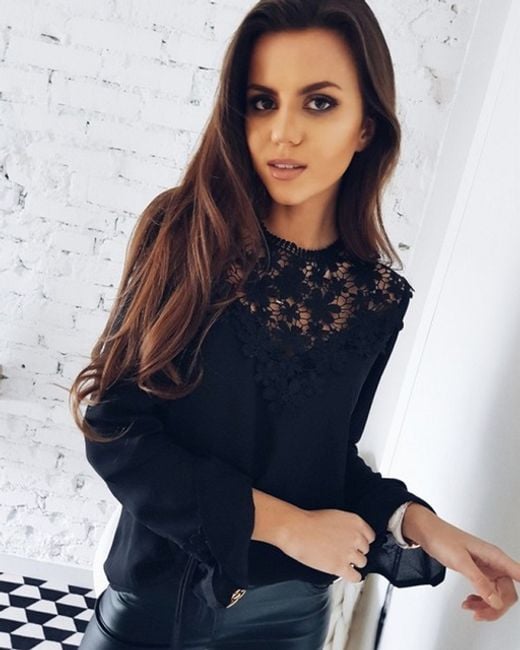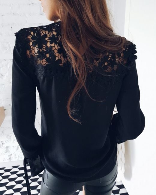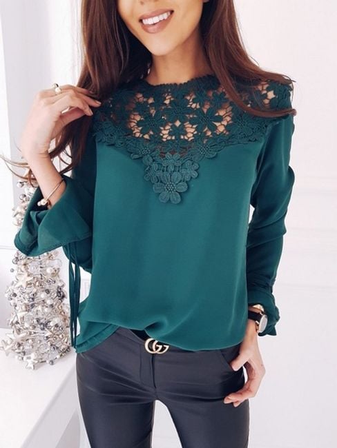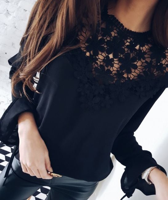 Die Bluse hat einen wunderschön verzierten oberen Teil mit Spitze.