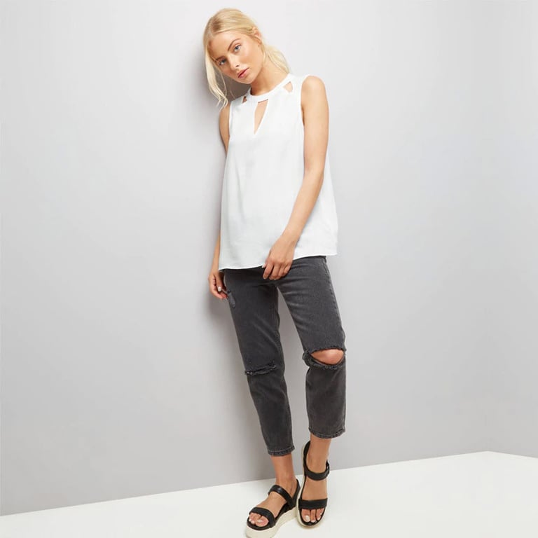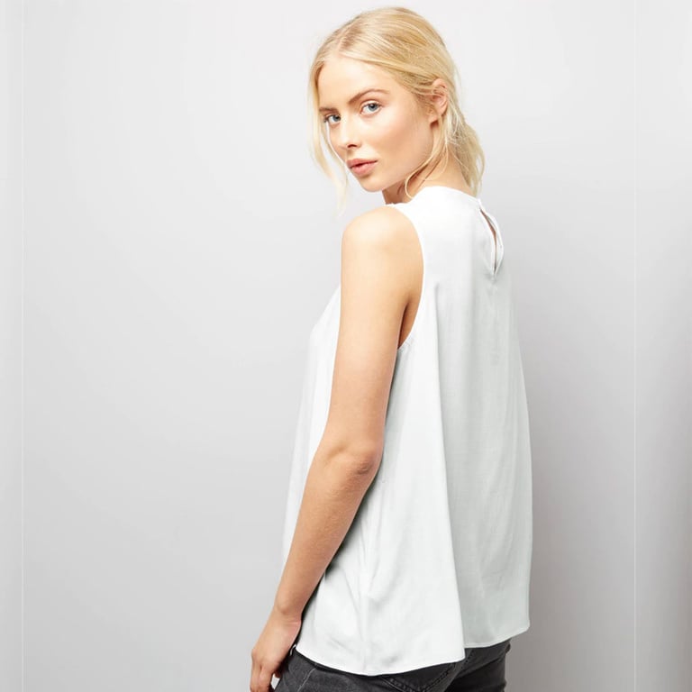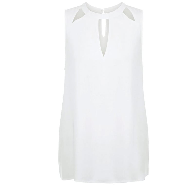 Damenbluse im eleganten, ärmellosen Design mit lockerer Passform. Die Bluse hat einen Kragen mit Ausschnitten. Leichtes, angenehmes Material. Erhältlich in mehreren Farben.