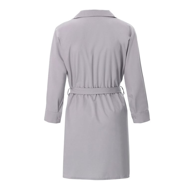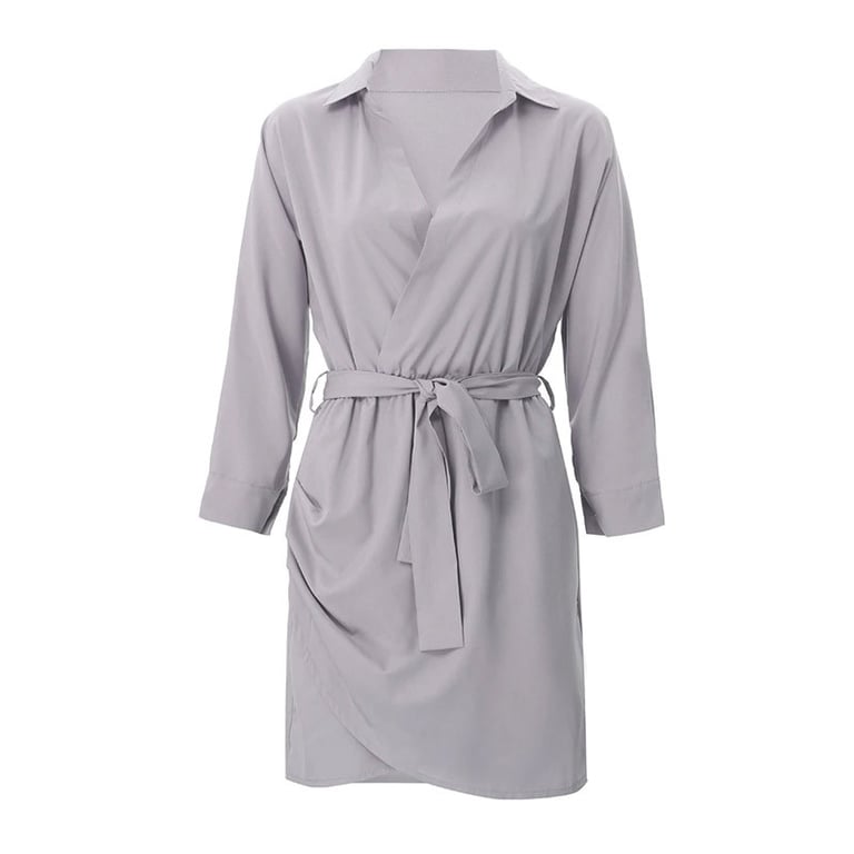 Damen kurze Hemdblusenkleider. Wickelausschnitt mit Kragen. Mit einer Schleife in der Taille gebunden. Lange Ärmel mit Knopfverschluss. Erhältlich in mehreren Farben.