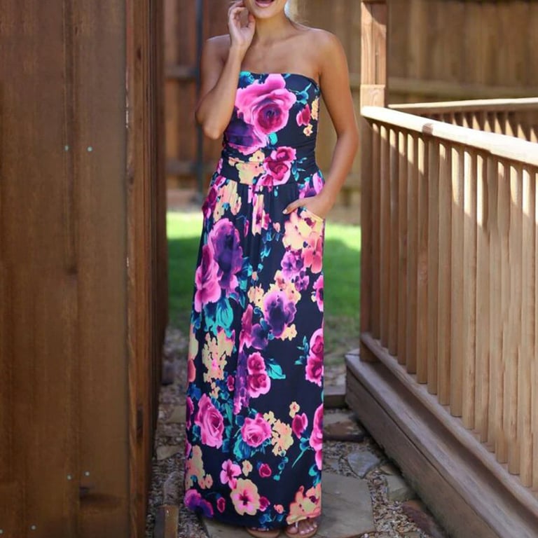Blumenmuster lange Kleider mit praktischen Taschen, in einem Schnitt, den Sie auch an den heißesten Tagen schätzen werden. Dank des mehrfarbigen Musters können Sie das Stück mit fast jedem Accessoire kombinieren. Kaufen Sie bei uns alles, was Sie wünschen, ohne Versandkosten.