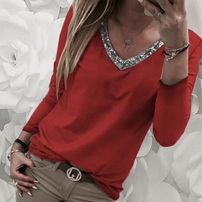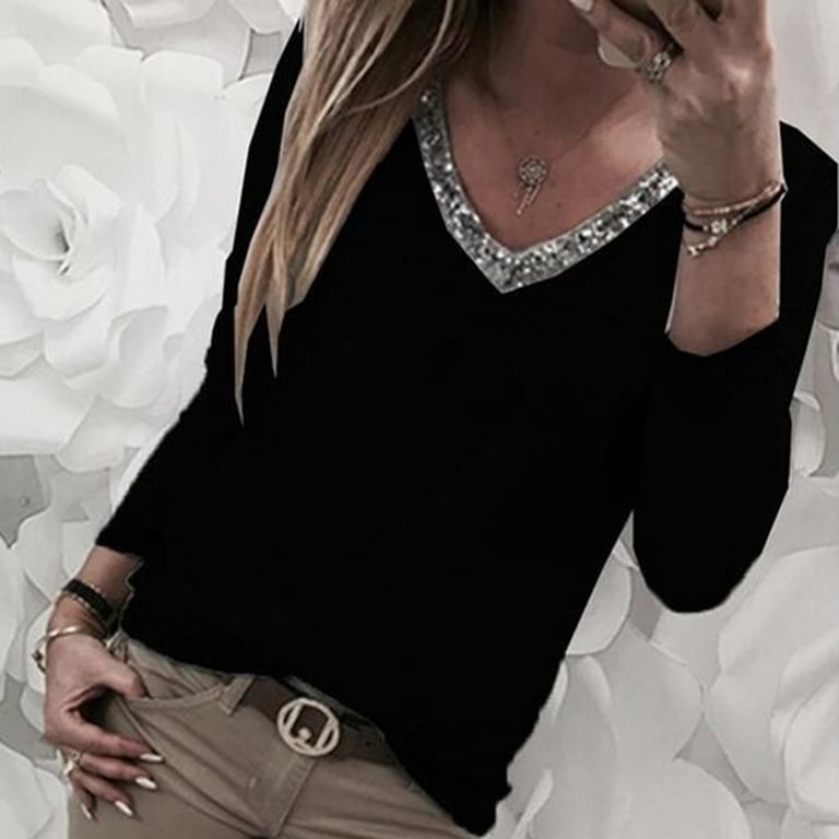 Elegantes Damenoberteil mit glitzerndem V-Ausschnitt. Ideal für den täglichen Gebrauch und für jeden Anlass.