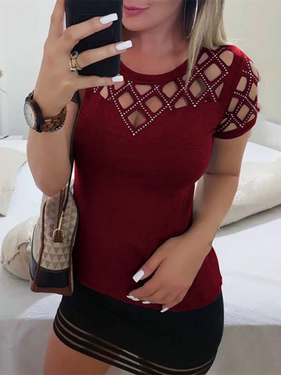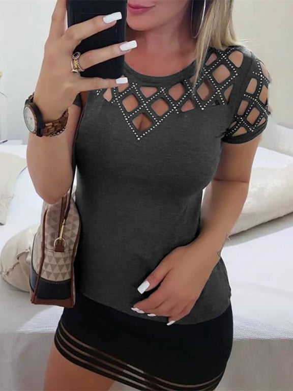 Damenmode T-Shirt mit Strasssteinen
