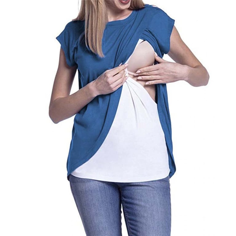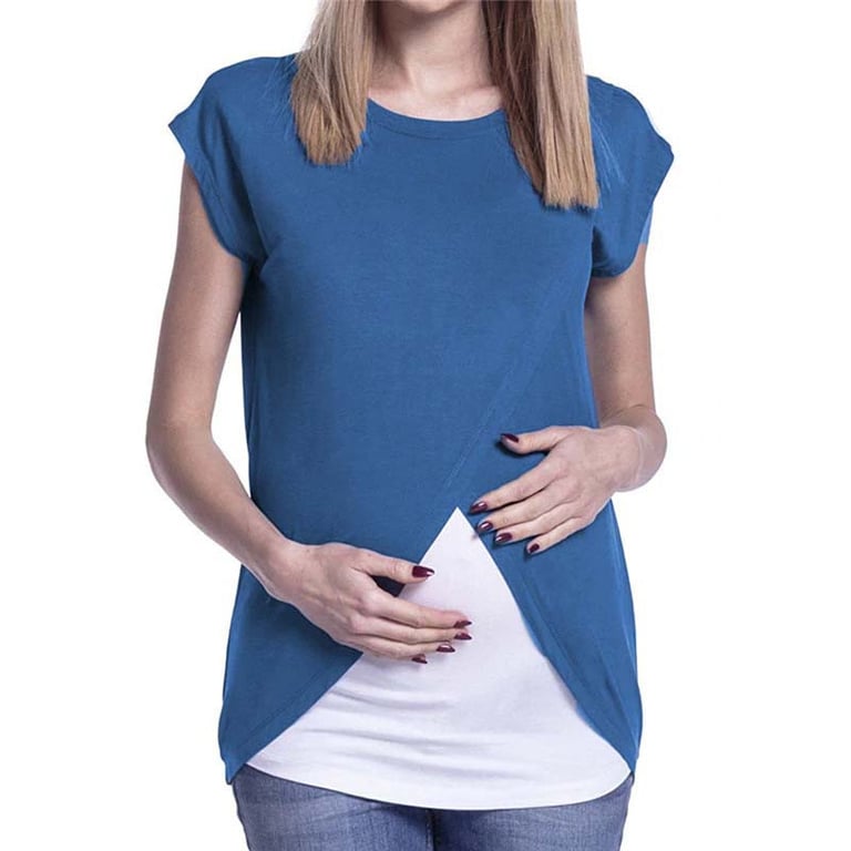 T-Shirt, das Sie während der Schwangerschaft bequem tragen können und auch nach der Geburt des Babys nützlich sein wird, da es sich zum Stillen eignet. Sie können einfach einen Teil des T-Shirts zur Seite schieben, ohne sich komplett ausziehen zu müssen.