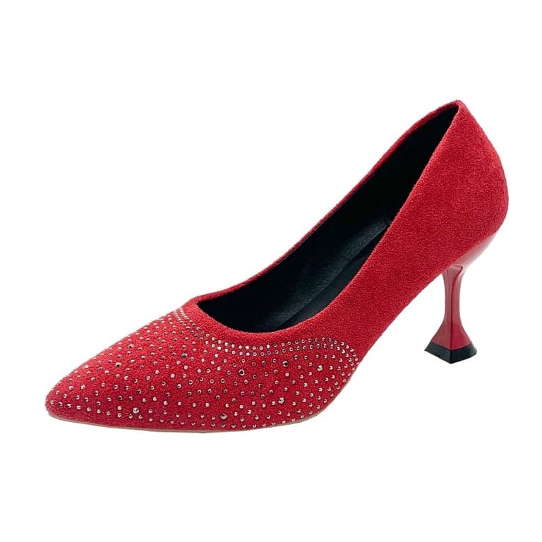 Damenabendpumps mit schmalem Absatz und Strasssteinen.