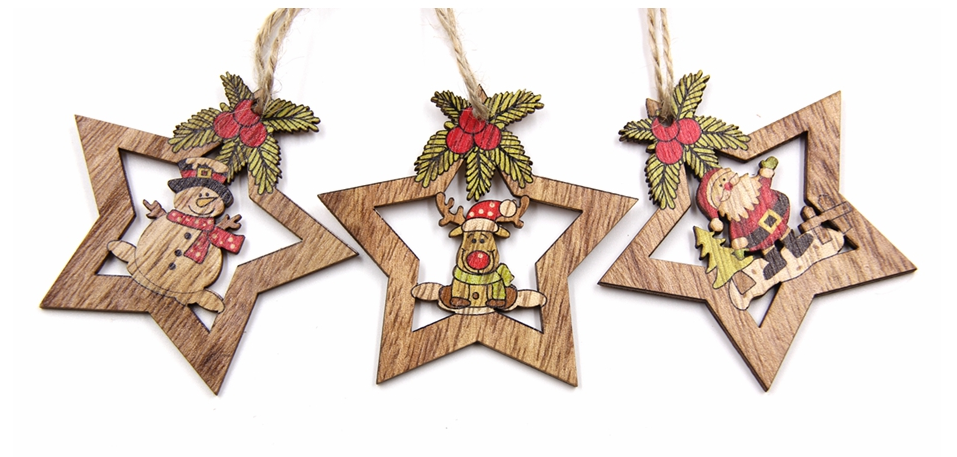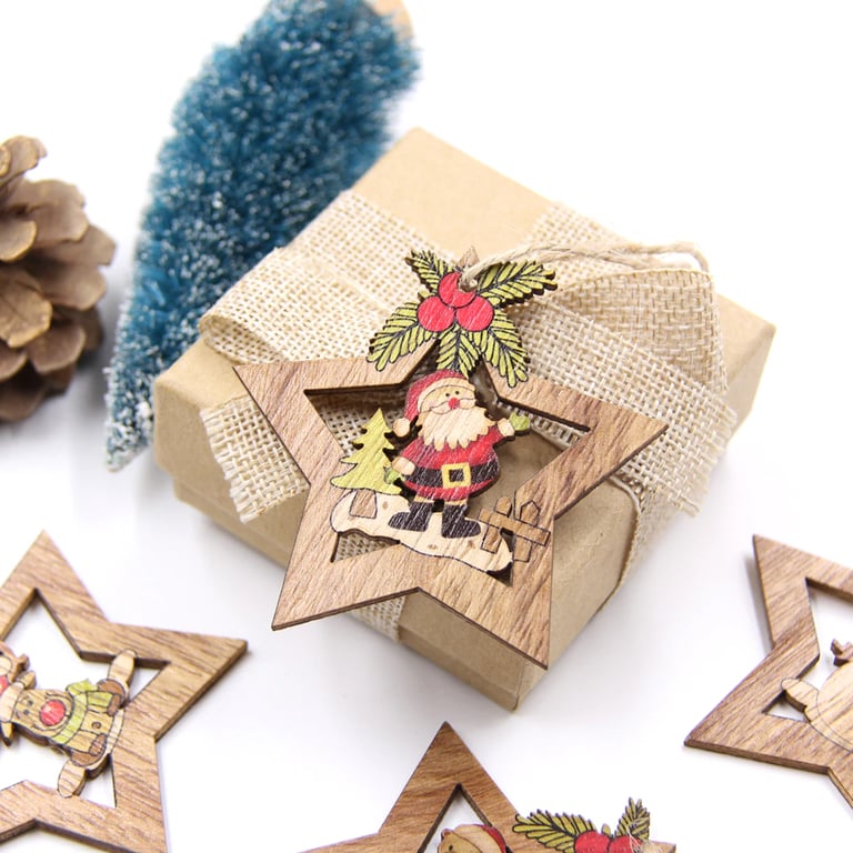 Schmücken Sie Ihren Baum mit diesen Holzornamenten in Form eines Sterns.