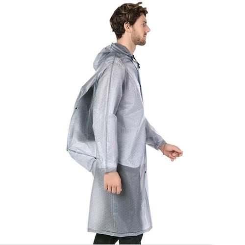 Herrenregenmantel mit Knöpfen, Kapuze und Platz für einen Rucksack in 4 Farbvarianten.