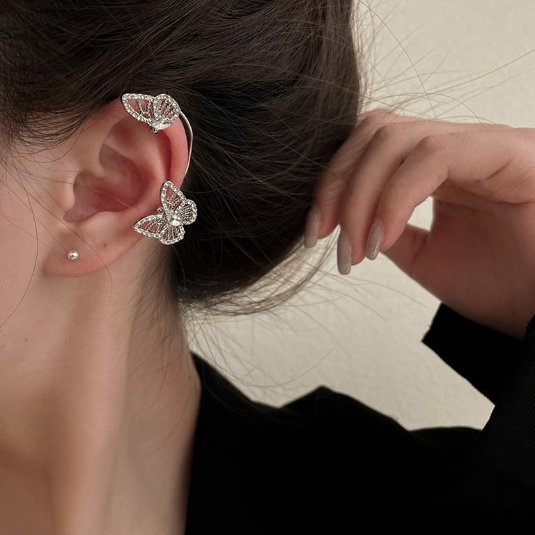 Falscher Ohrstecker über das ganze Ohr – glitzernde Schmetterlinge