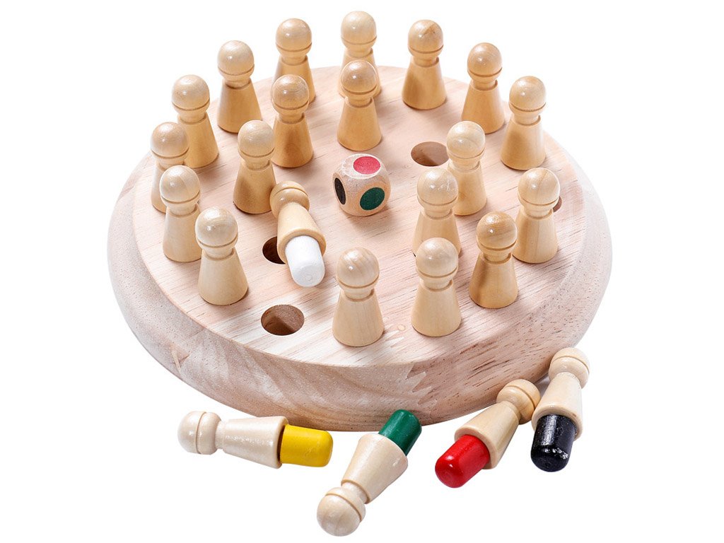 Das edukative Gedächtnisspiel Memory Chess ist geeignet für Kinder und Erwachsene! Haben Sie Pexeso geliebt? Dann ist dieses Spiel genau das Richtige für Sie. Würfeln Sie und ziehen Sie 4 Figuren. Versuchen Sie immer, 4 gleichfarbige Figuren zu finden, die Sie geworfen haben. Der Spieler mit der höchsten Anzahl gefundener Vierergruppen gewinnt!