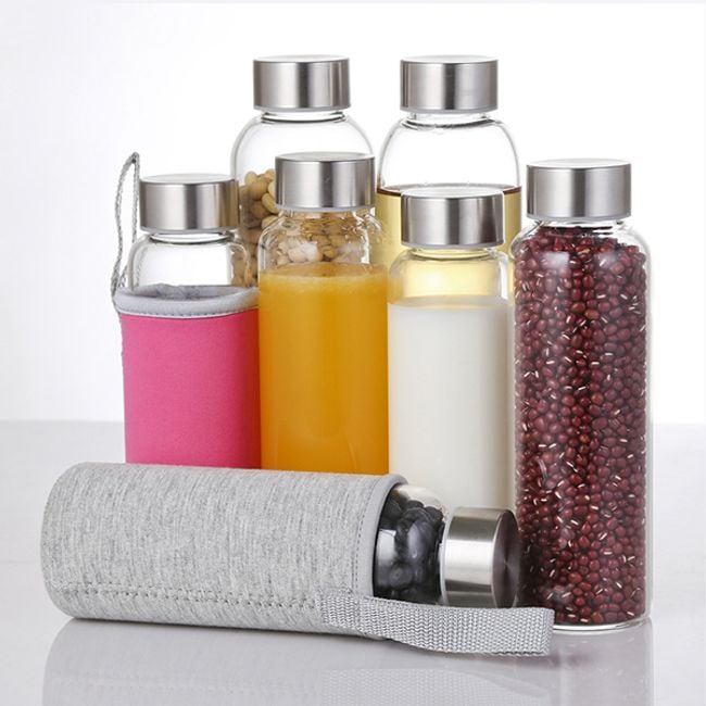 Die Flasche ist ideal für den Transport von Wasser, Saft, Kaffee, Tee oder zum Beispiel von selbstgemachten Smoothies. Dank der praktischen Hülle mit Tragegriff können Sie sie ganz einfach ins Fitnessstudio, ins Büro oder überallhin mitnehmen, wo Sie auf Ihre Flüssigkeitszufuhr achten müssen. Die Flasche ist farblos und klar, Sie können aus mehreren Farben für die Hülle wählen.