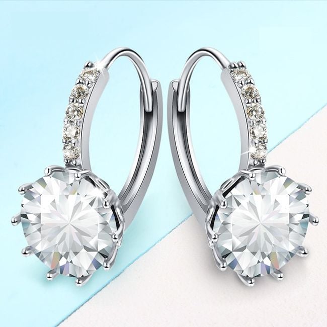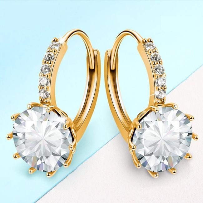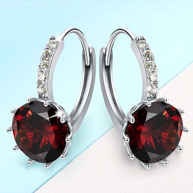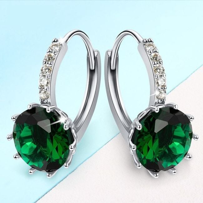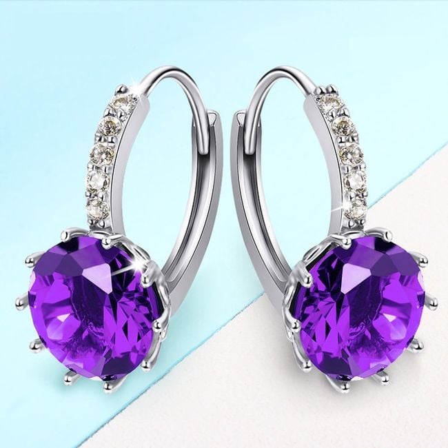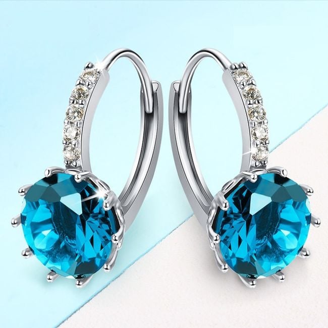 Die Ohrringe bestehen hauptsächlich aus einem größeren bunten Stein und mehreren kleineren in klarer Farbe. Sie haben die Wahl aus vielen Farben.