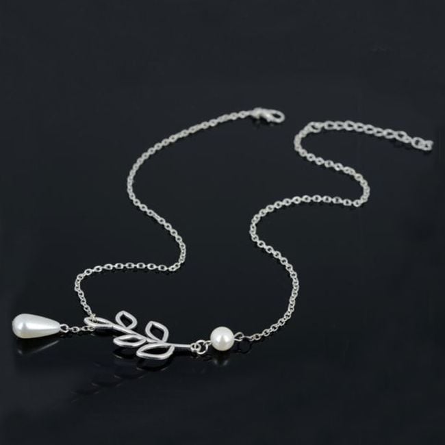 Eine elegante Halskette ist ein aufmerksames Geschenk für Ihre geliebte Partnerin. Die Kette ist mit 2 schönen Perlen und kleinen Blättern verziert. Der Verschluss ist in der Größe verstellbar. Ein wunderschönes Accessoire, das zu zarter Kleidung passt.