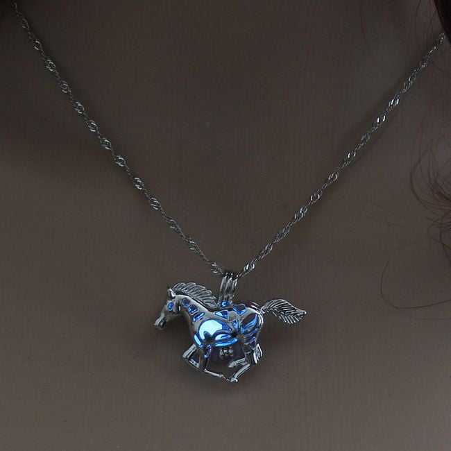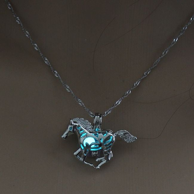 Halskette mit einem Pferdeanhänger, der im Dunkeln leuchtet. Sie können aus 3 Farben wählen.