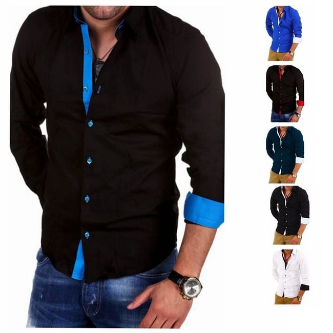 Herrenhemd, das ein wunderbares Stück für jeden Mann sein wird. Das Hemd ist zweifarbig, sodass es sich leichter kombinieren lässt. Die angegebenen Maße beziehen sich auf das Produkt, nicht auf den Körper.