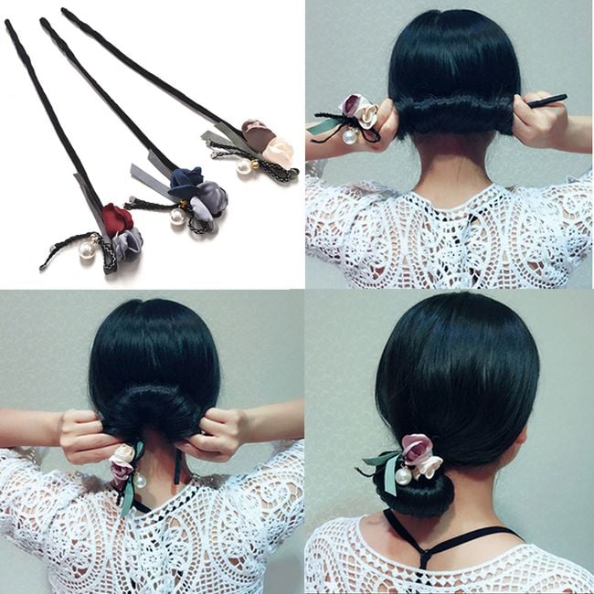 Ein Hilfsmittel, mit dem Sie ganz einfach eine schöne Frisur mit blumigen Details kreieren können.