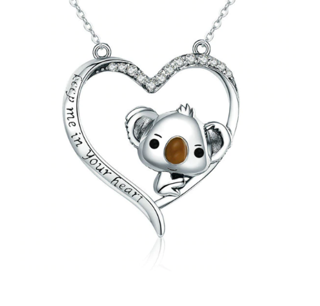 Die Kette hat eine silberne Farbe und ist mit einem Herzchen verziert, in dem sich ein Koala befindet. Sie eignet sich als sehr schönes Accessoire für den Alltag sowie für gesellschaftliche Anlässe.