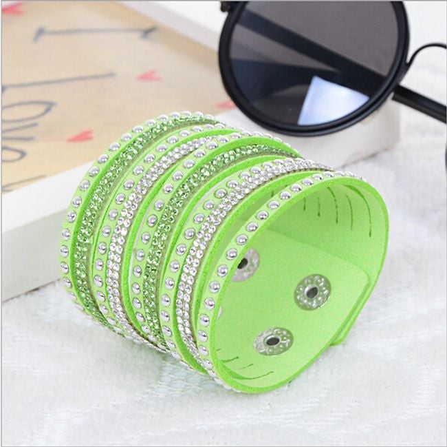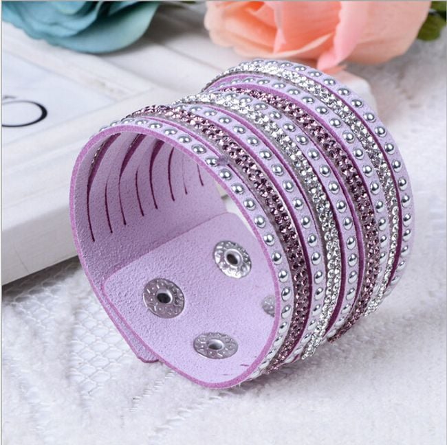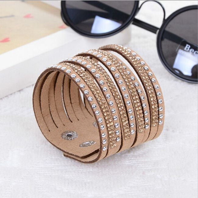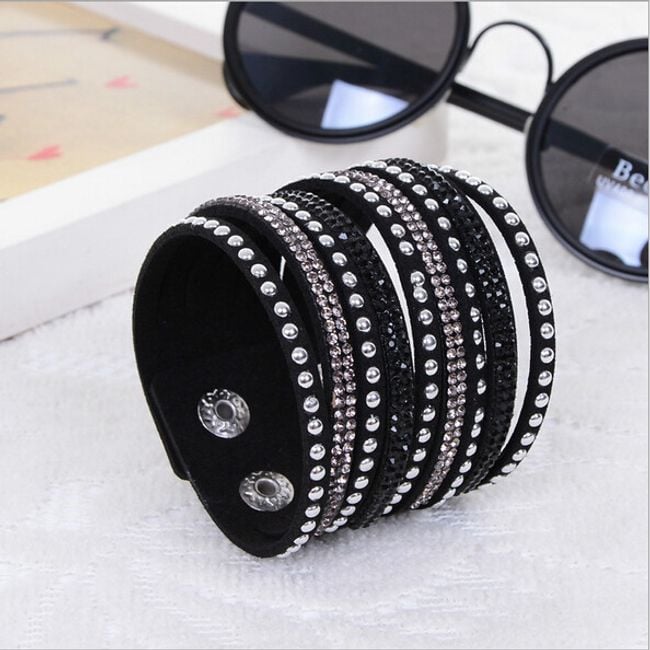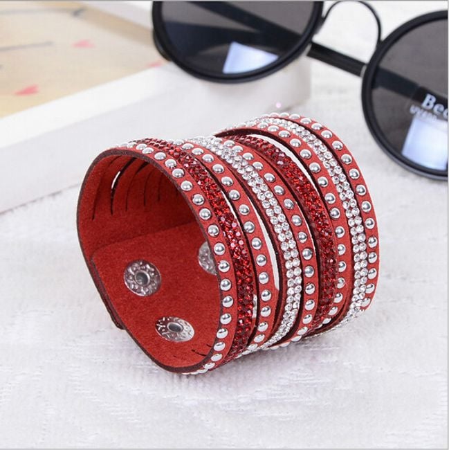 Damenarmband aus Kunstleder mit Schmucksteinen, ideal als Accessoire für Partys.