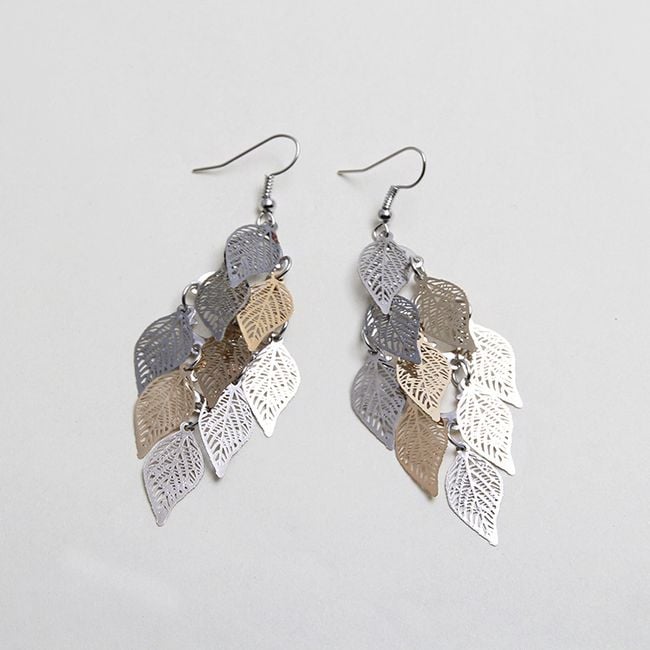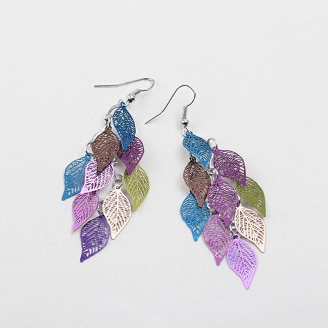 Die Ohrringe sind mit bunten Blättern verziert und eignen sich für den täglichen Gebrauch.
