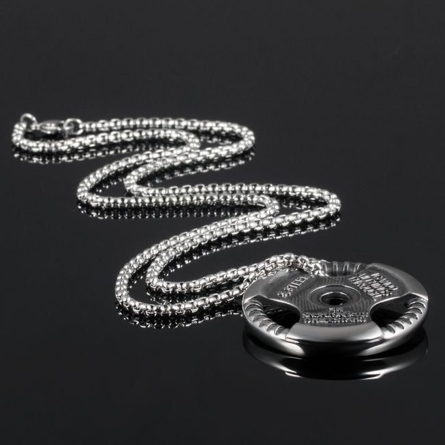 Schöne modische Halskette, die sowohl ihm als auch ihr gut steht. Die Kette ist in einem schlichten Design und mit einem Anhänger in Form eines Lenkrads verziert. Sie ist aus rostfreiem Stahl gefertigt. Die Halskette könnte auch ein tolles Geschenk für alle leidenschaftlichen Autofahrer sein. Sie können aus drei Farbvarianten wählen.