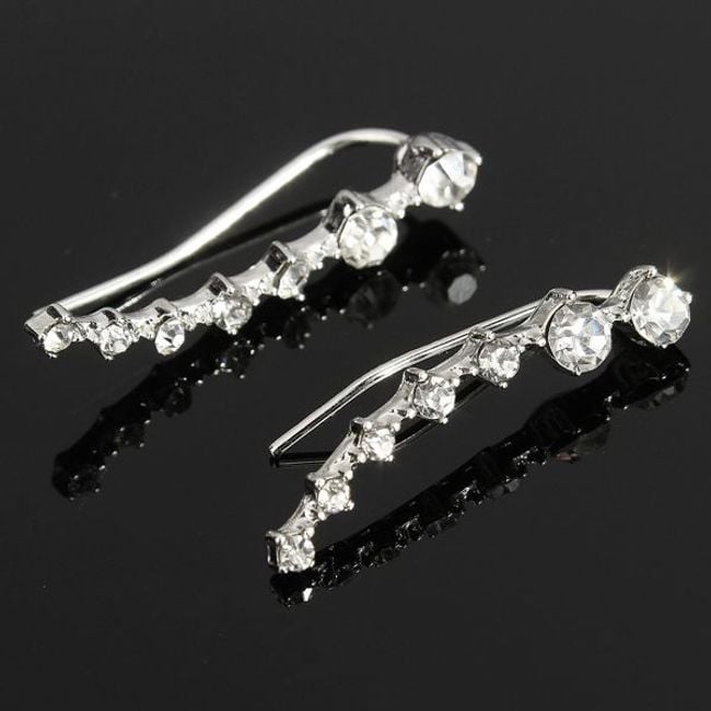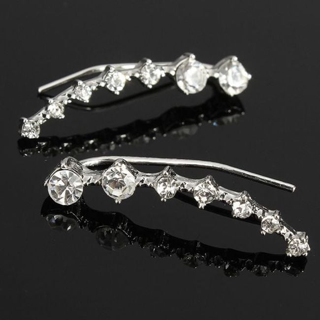Moderne Ohrringe mit Steinen aus geschliffenem Glas werden jeder Frau Freude bereiten. Die Ohrringe sind silberfarben und sehen am Ohr wirklich luxuriös aus. Zum Tragen ist ein durchstochenes Ohr erforderlich.