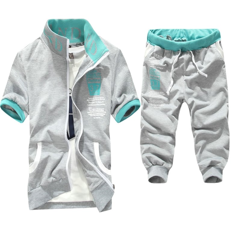 Hier haben wir ein weiteres Stück für Herren. Bequemer Trainingsanzug bestehend aus Hose und Kurzarm-Zip-Hoodie.