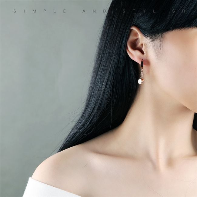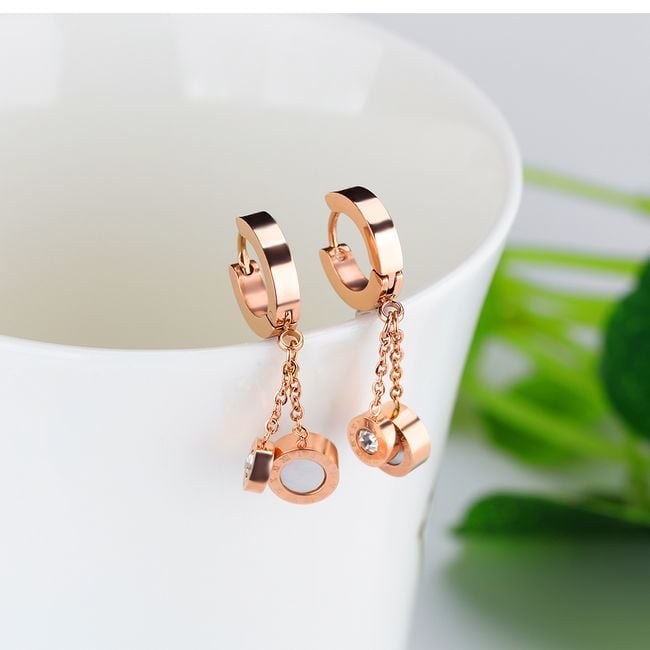Stylische Ohrringe bestehen aus klassischen Ringen, die jedoch mit Anhängern an Ketten bereichert sind.